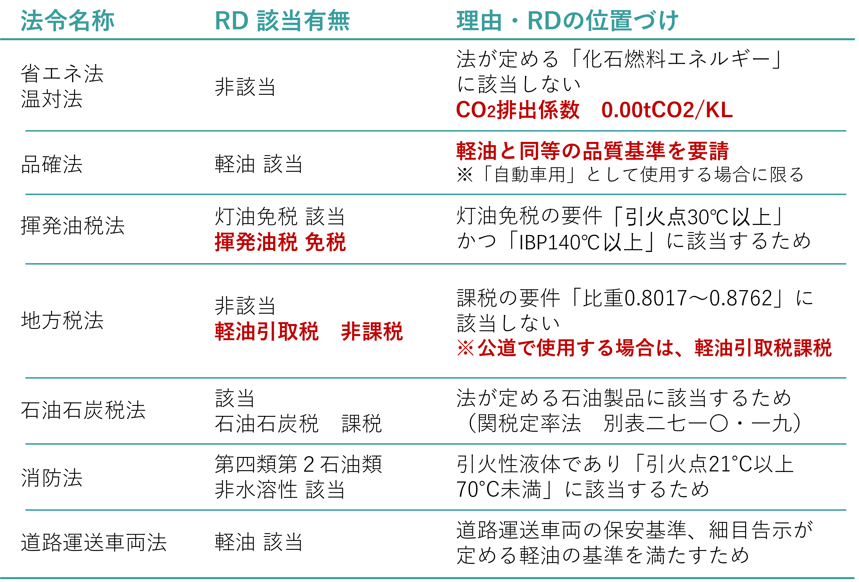 リニューアブルディーゼル(RD)は、廃食油や植物油などの再生可能な資源から製造される軽油の代替燃料です。